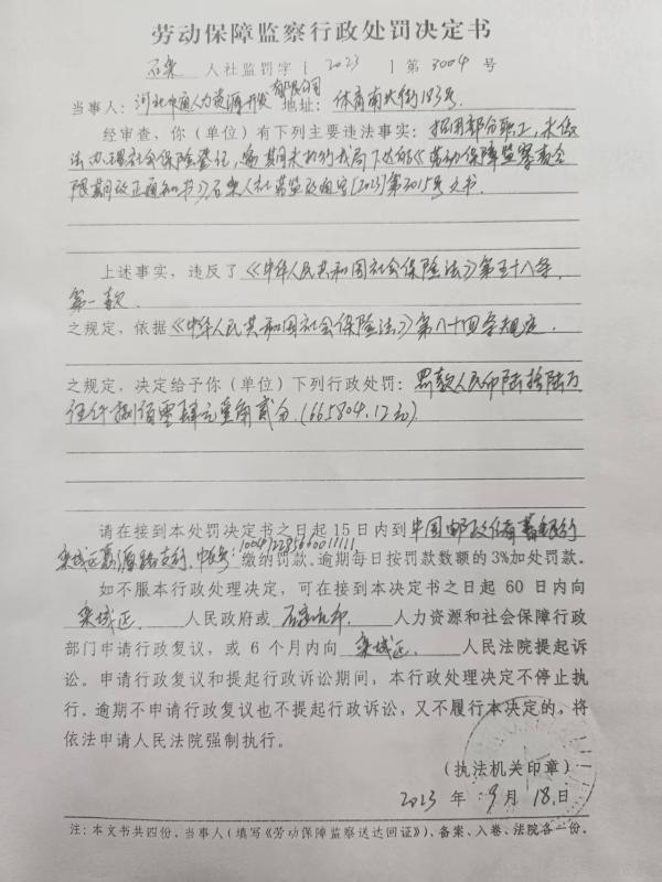 劳动保障监察行政处罚决定书