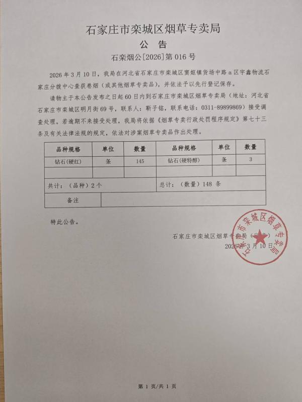 栾城区烟草专卖局查找当事人公告-016
