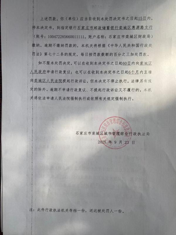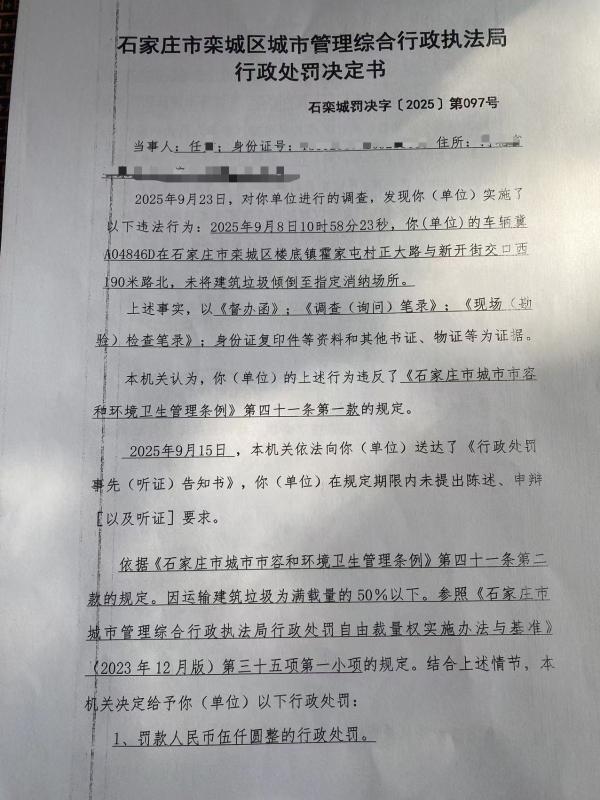 石栾城罚决字〔2025〕第097号 冀A04846D未将建筑垃圾倾倒至指定消纳场所