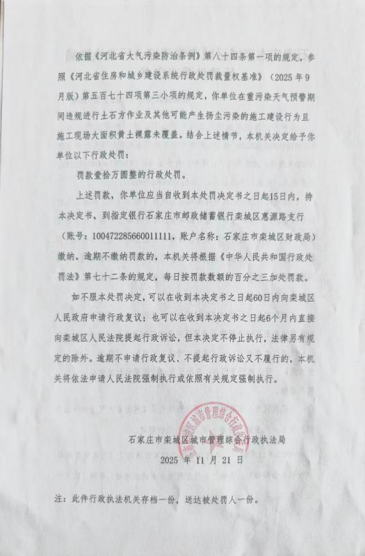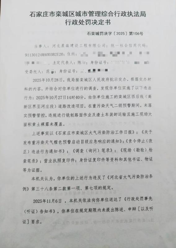 石栾城罚决字〔2025〕第106号