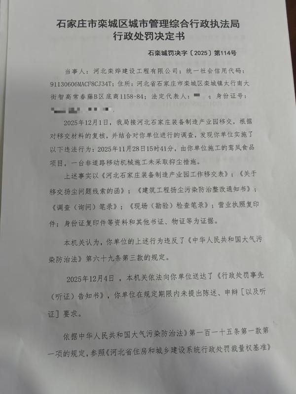 河北栾烨建设工程有限公司未采取抑尘措施案