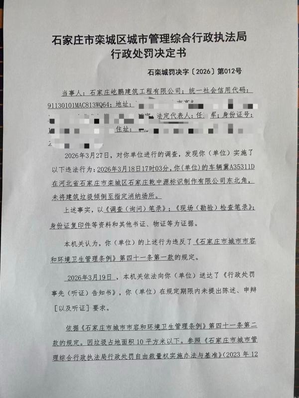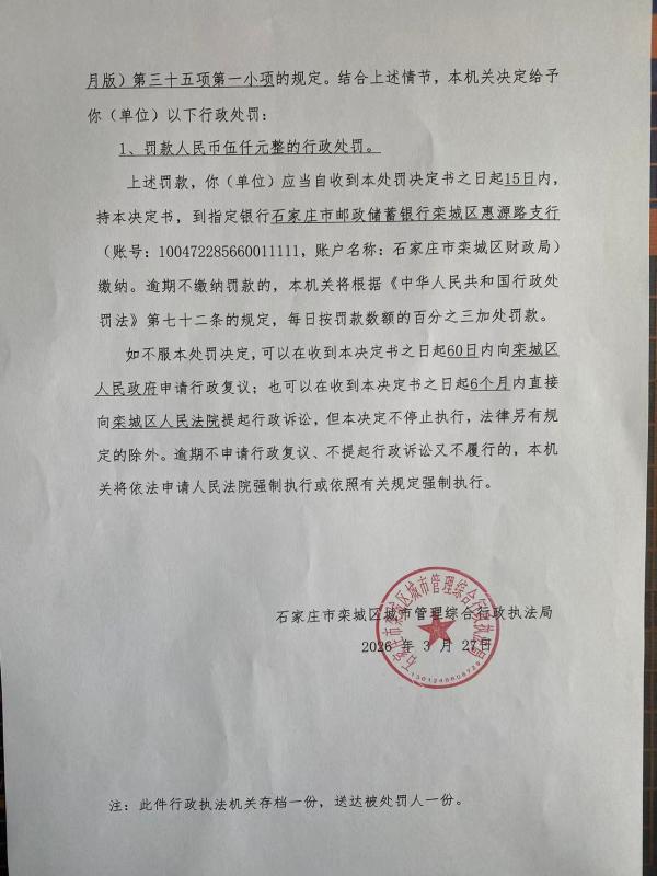 石栾城罚决字〔2026〕第012号