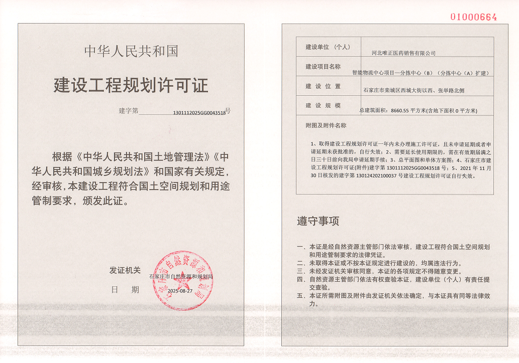 智能物流中心项目—分拣中心(B)(分拣中心(A)扩建)建设工程规划许可证