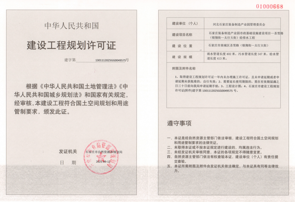 石家庄装备制造产业园市政基础设施建设项目—圣雪路(银翔街—太行大街)给排水工程 |