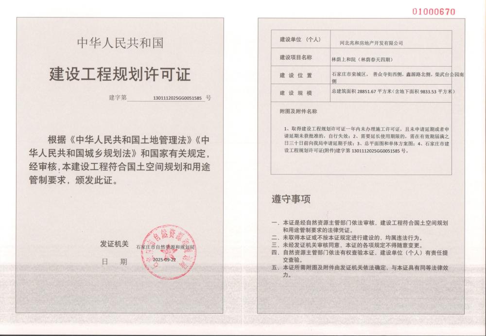 林荫上和院(林荫春天四期)建设工程规划许可证