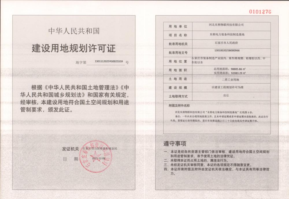 河北东朔物联科技有限公司“东朔电力装备科技制造基地”的建设用地规划许可证