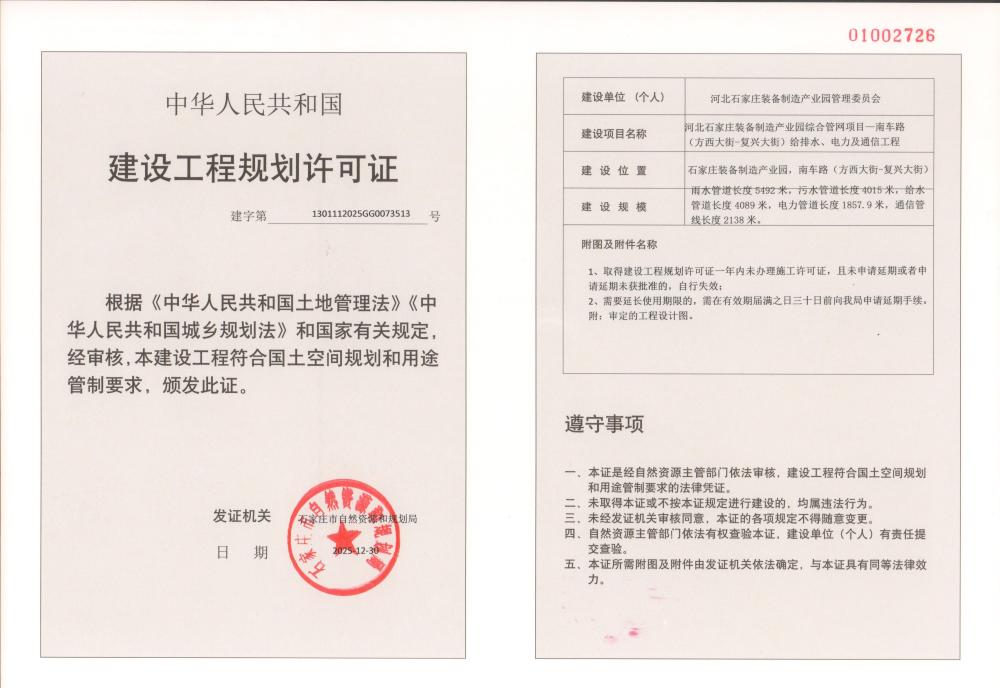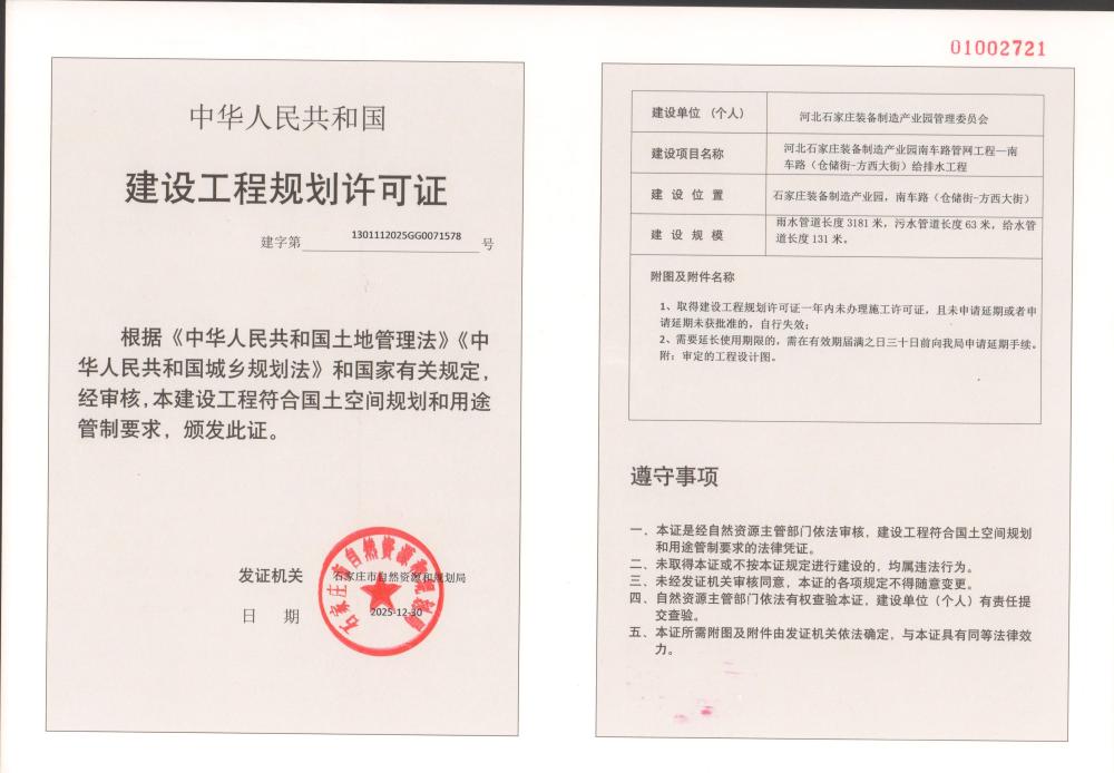 河北石家庄装备制造产业园综合管网项目—南车路 (方西大街-复兴大街)给排水、电力及通信工程 |