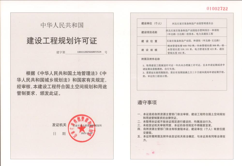 河北石家庄装备制造产业园综合管网项目—和谐街 (环北路-文达路)给排水、电力及通信工程