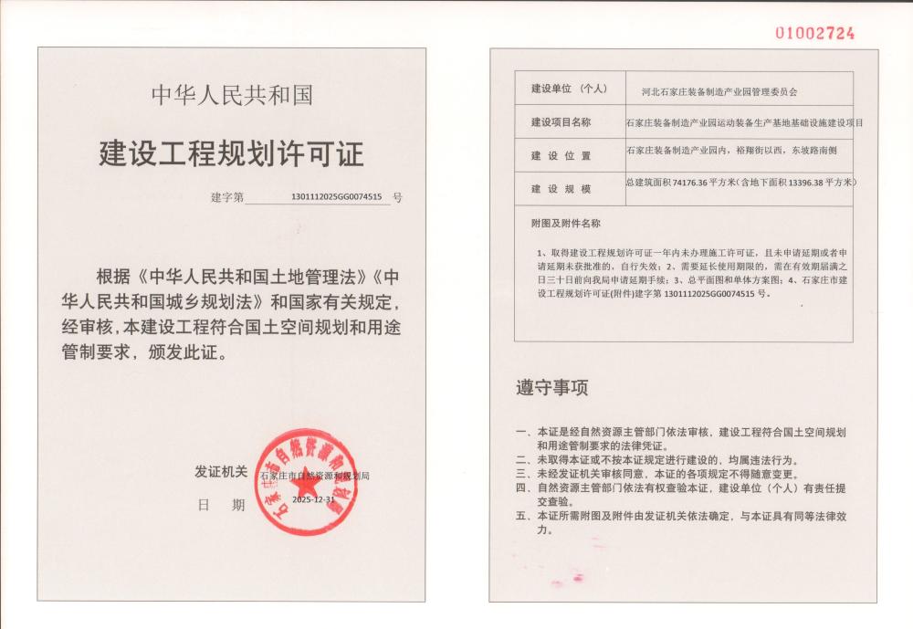 石家庄装备制造产业园运动装备生产基地基础设施建设项目 |