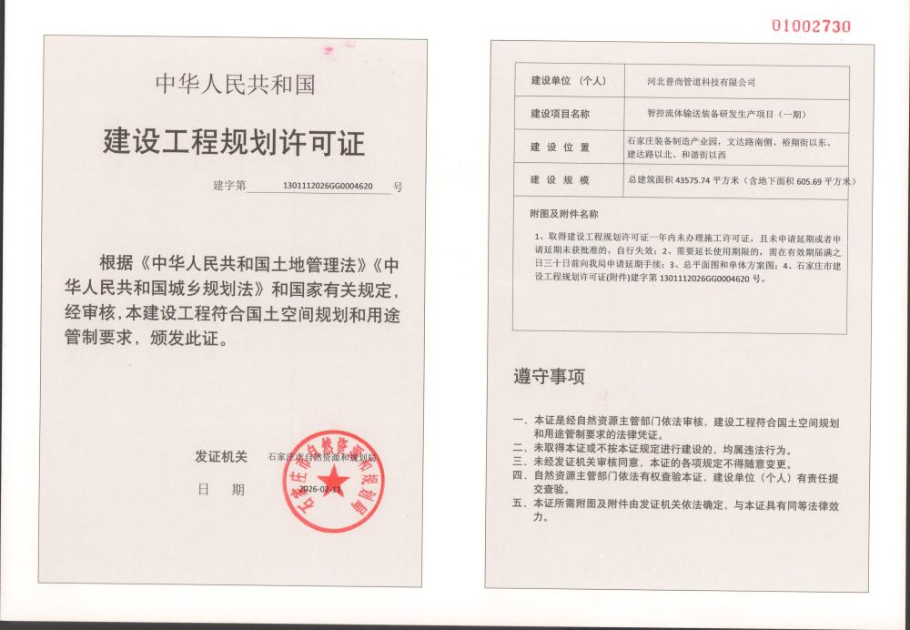 智控流体输送装备研发生产项目(一期)建设工程规划许可证