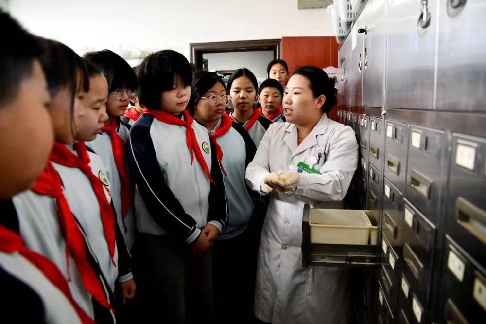 2025年10月22日,河北省石家庄市栾城区中医院,医务人员为栾城区育才学校的学生讲解中药知识。