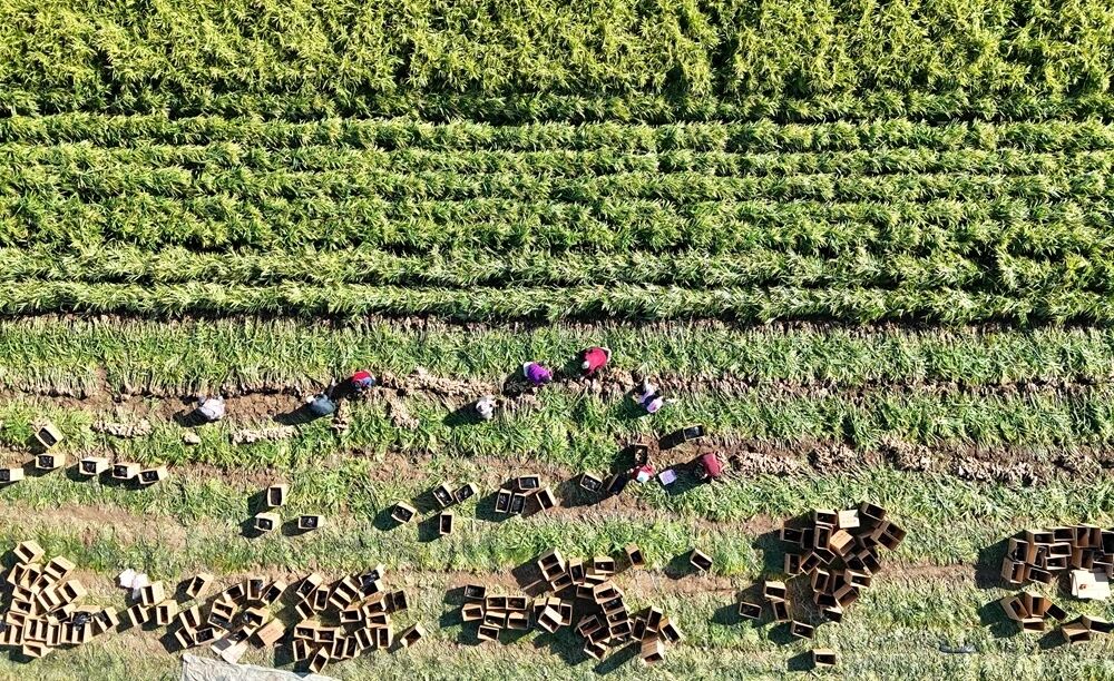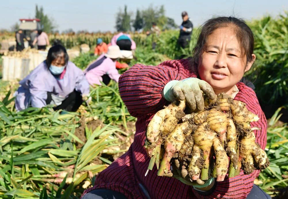 时下,正值生姜收获季节。在石家庄市栾城区南高乡北安庄村的姜田里,姜农们正在抢抓农时进行采收,阳光映照下,新出土的生姜色泽金黄、根茎饱满。大家分工协作,场面忙碌而有序,这派热火朝天的景象,成为了今秋最动人的风景。