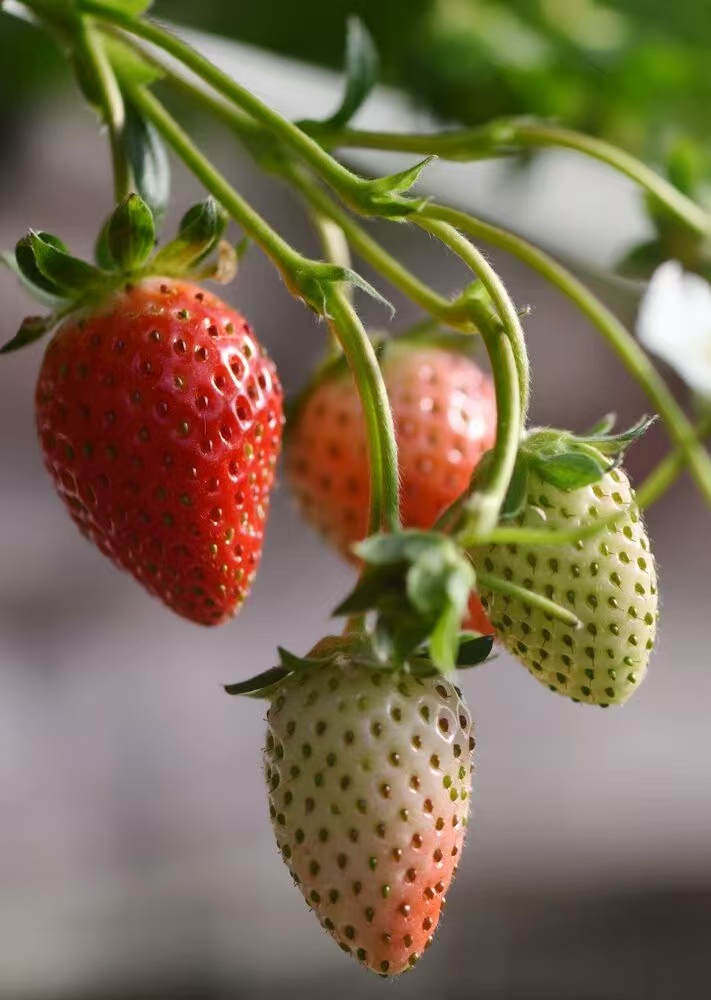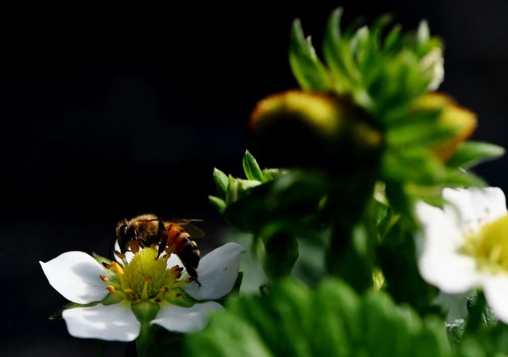 石家庄市栾城区范台草莓种植基地大棚里,草莓花开小巧洁白。
