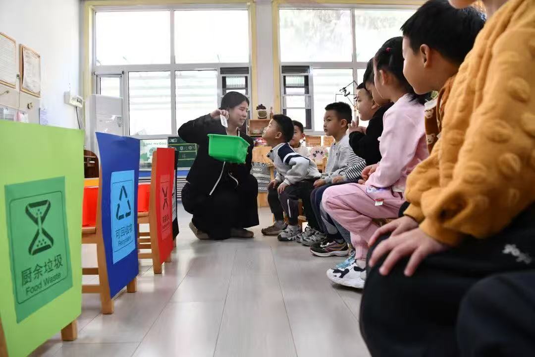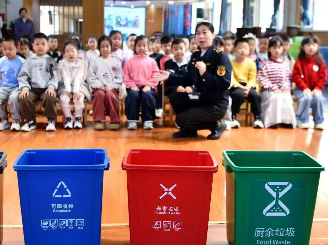石家庄市栾城区城管工作人员走进该区第二幼儿园,为小朋友们开展垃圾分类科普讲解,引导孩子们从小树立环保意识。