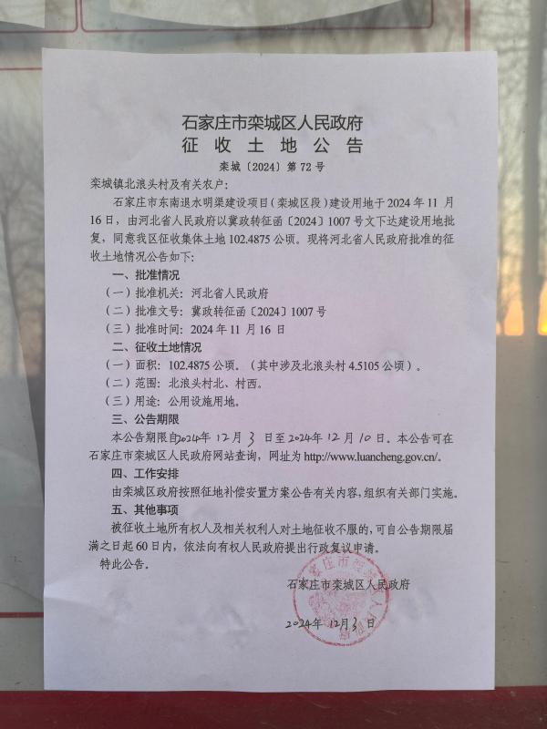 栾城区栾城镇北浪头村征收土地公告