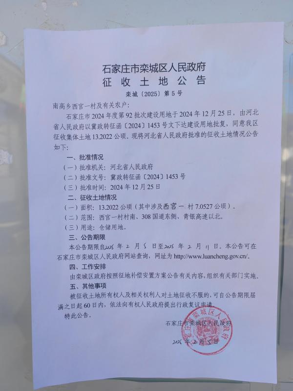 栾城区南高乡西宫一村征收土地公告