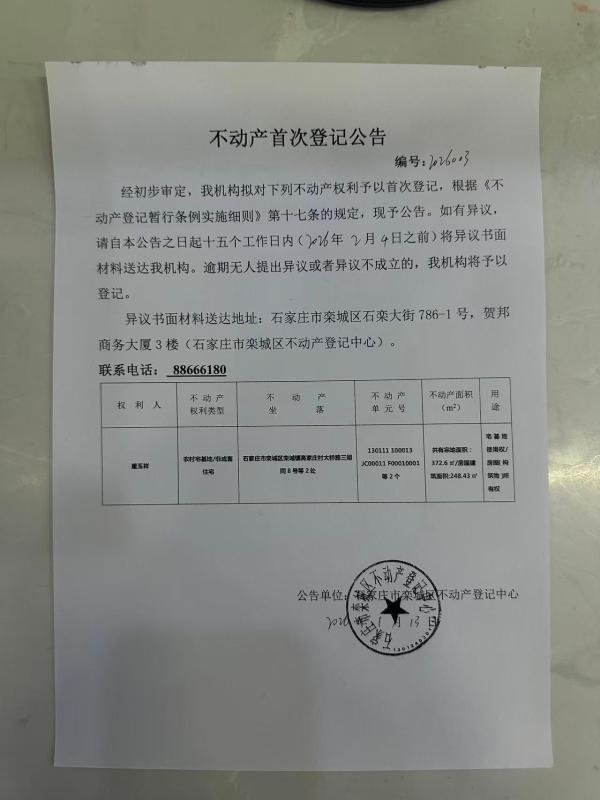 董玉祥不动产首次登记公告