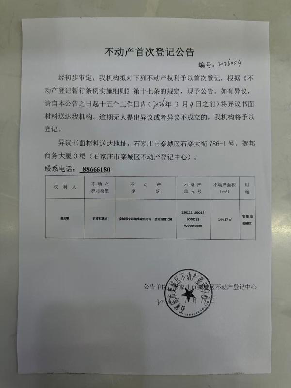 赵茹敏不动产首次登记公告