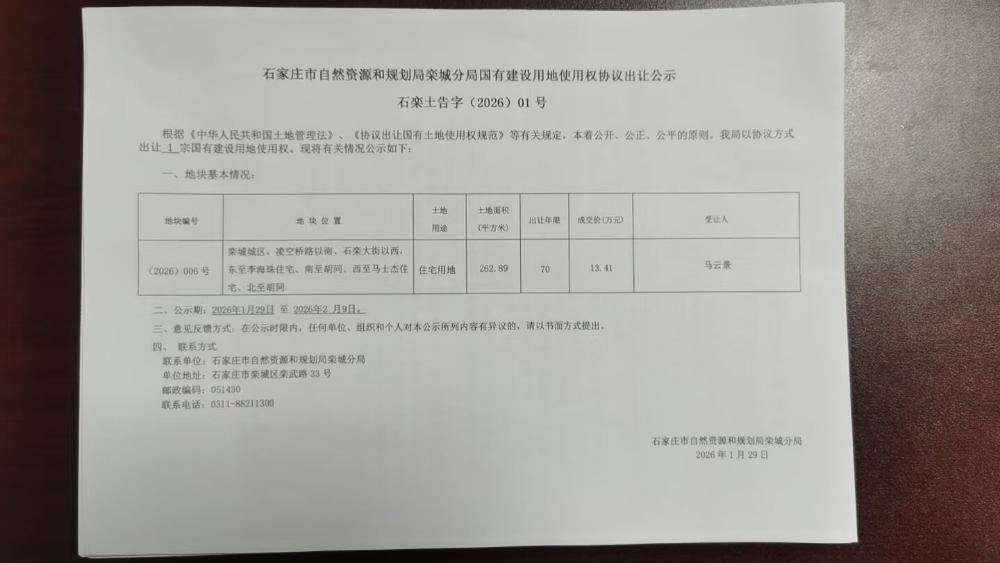 石家庄市自然资源和规划局栾城分局国有建设用地使用权协议出让公示