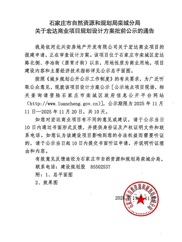 关于宏达商业项目规划设计方案批前公示