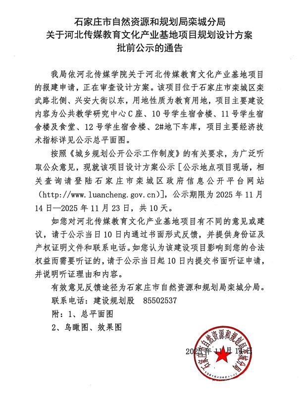 河北传媒教育文化产业基地项目规划设计方案批前公示的通告